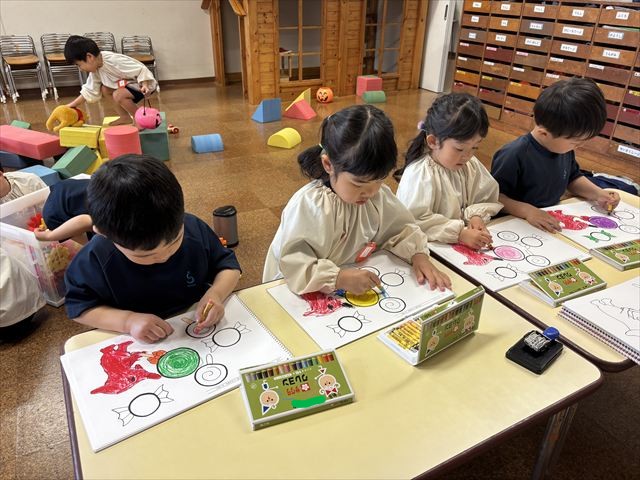 新しいお部屋になり、遊び方、使い方を聞いたり、8色のクレパスから16色のクレヨンになり早速、ぬり絵もしました🖍