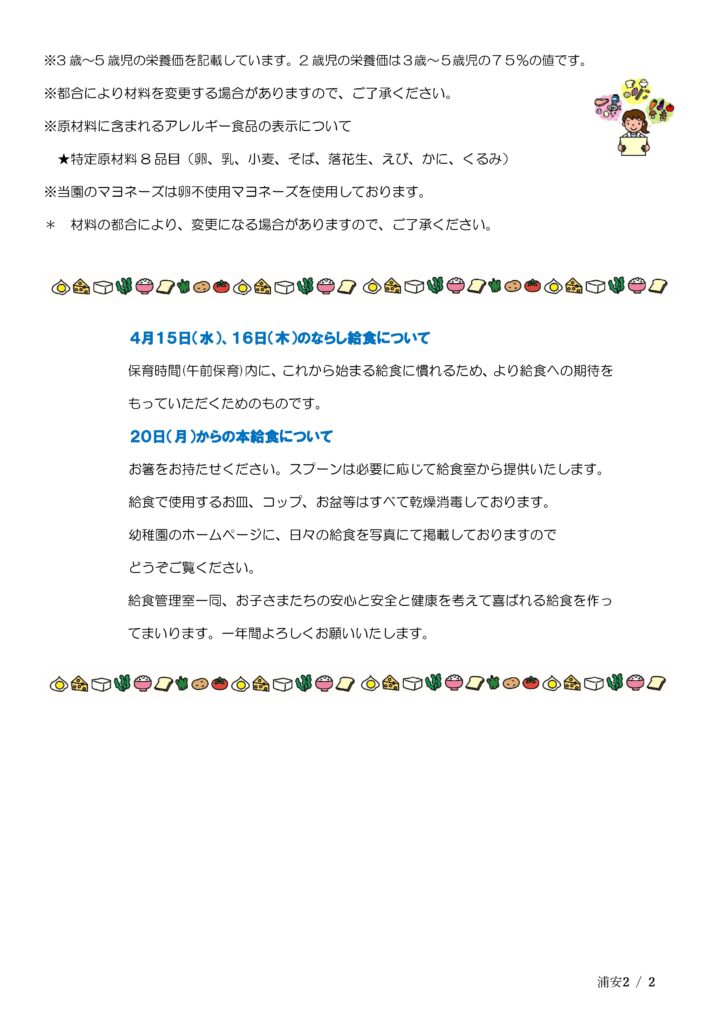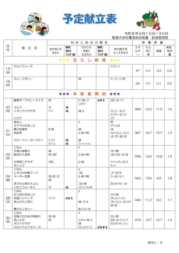 予定献立表(4月)