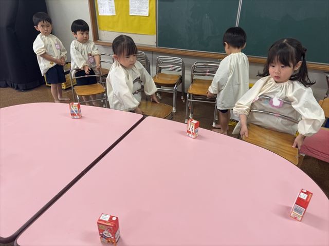 一日目のリンゴジュースはテトラパックだった為ゴミ箱に捨てず、各クラスで集めました。