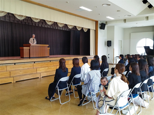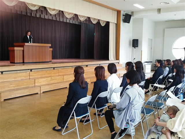 父母の会総会では、園長先生の話のあとに今年度の父母の会役員(クラス幹事)の方の紹介や挨拶がありました。