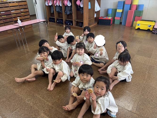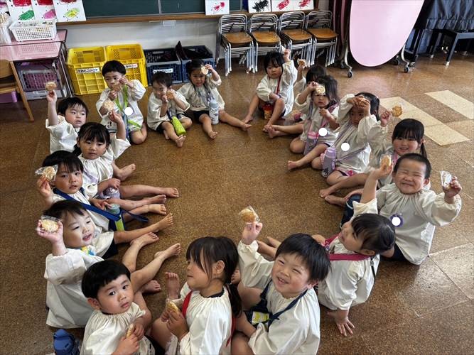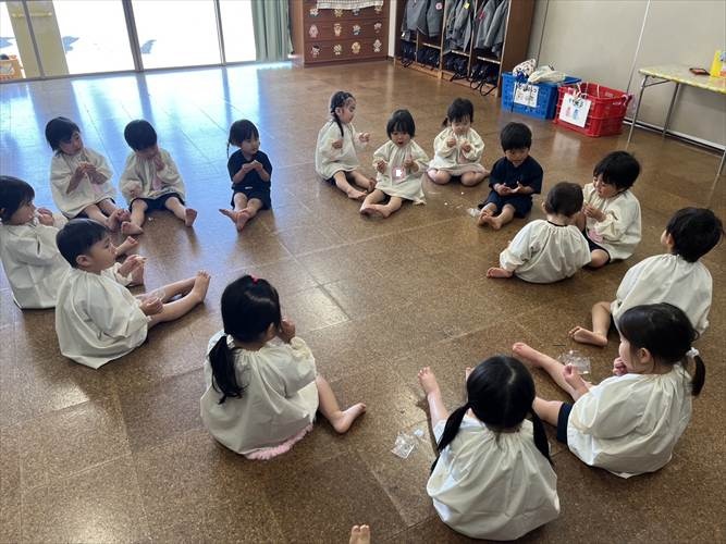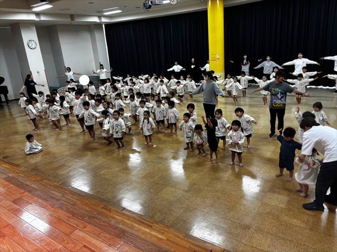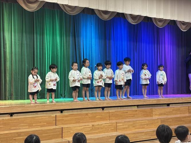 他には聖徳幼稚園オリジナルの「お誕生会のうた」や「おもちゃのチャチャチャ」の歌を歌いました。