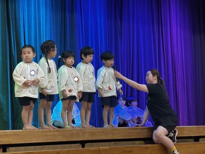 舞台では、先生方から一人ずつお誕生日のお友だちの紹介がありました。