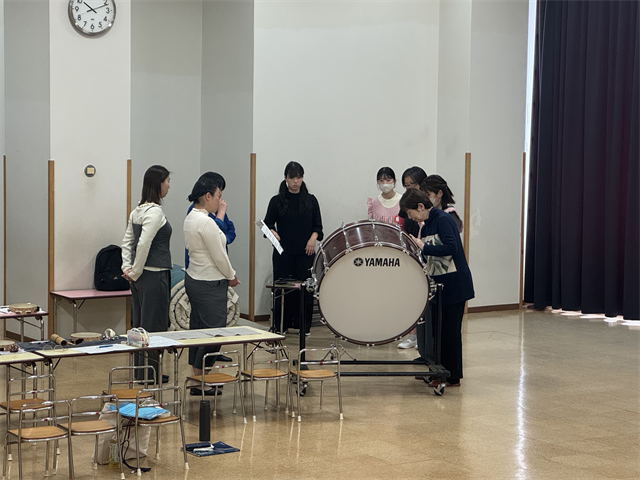 松組・梅組・桜組の合奏曲について、楽器の鳴らし方や子どもたちへの指導の方法を学びます。
