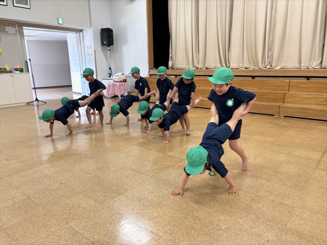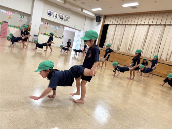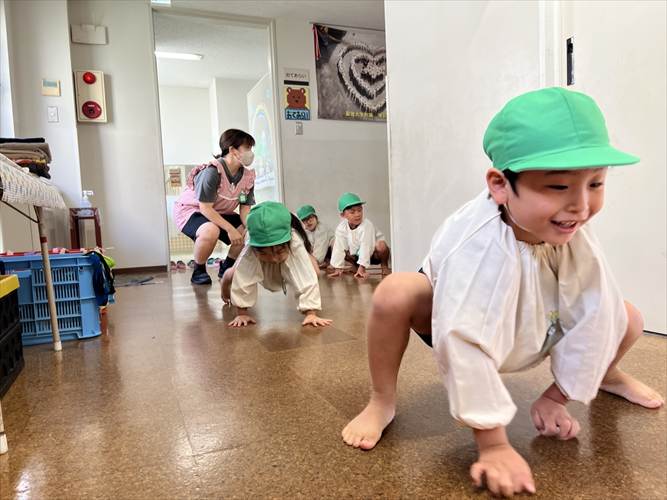 小運動会では保護者の方と一緒に手押し車も行いますので、是非ご家庭でもチャレンジしてみてくださいね!