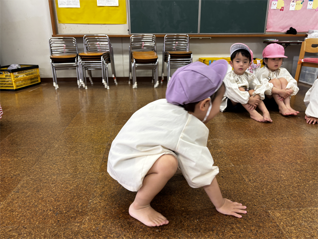 今日の3歳児 桜組では、【巧技台】に挑戦しました。