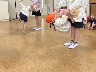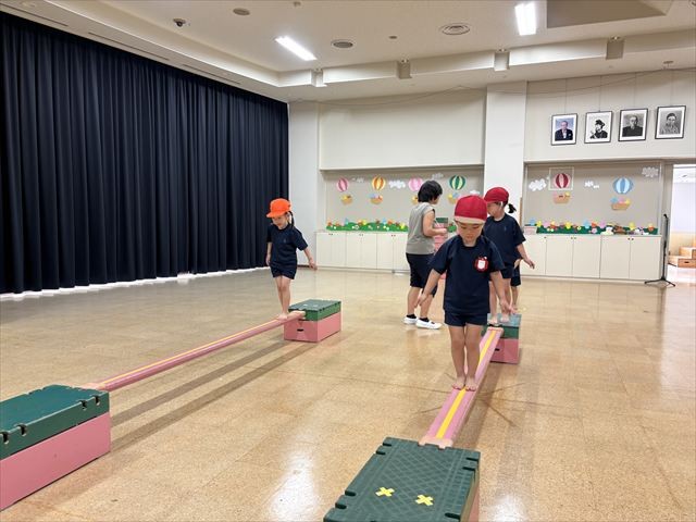 遊戯室では、鉄棒のぶら下がりにビーム渡り、お姉さん先生とくるりんぱをしました💫